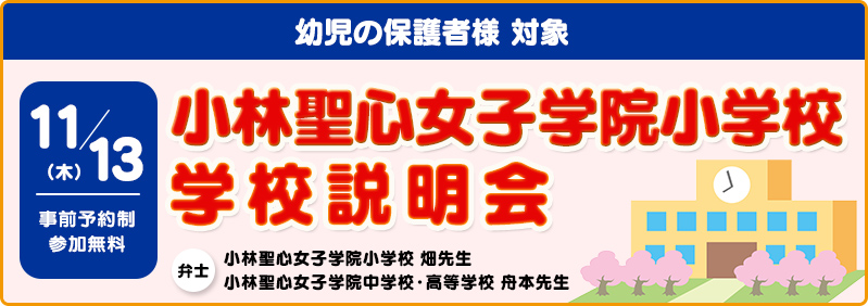 - 【11/13】全学年「小林聖心女子学院小学校 学校説明会」