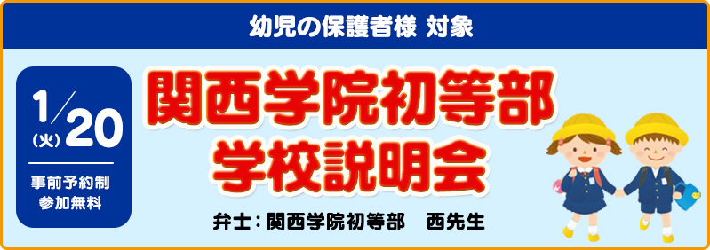 - 【1/20】全学年「関西学院初等部 学校説明会」